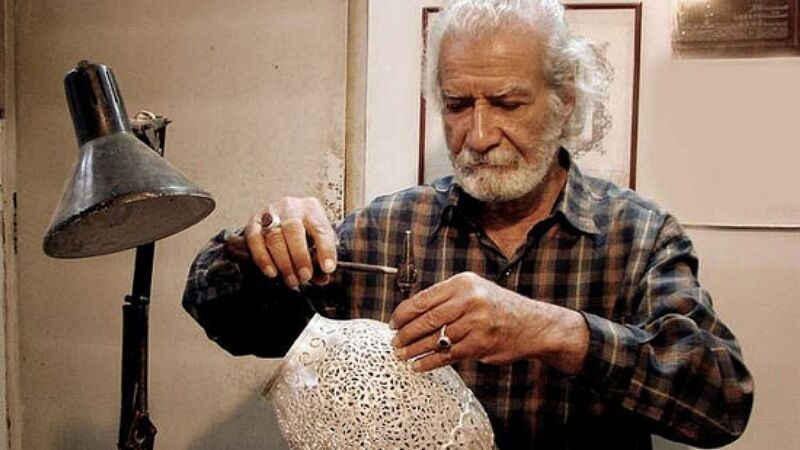 گاهی می شد در خانه هنرمندان اصفهان به خدمتش می رسیدم و ساعتها کار قلمزنی او را نگاه می کردم.